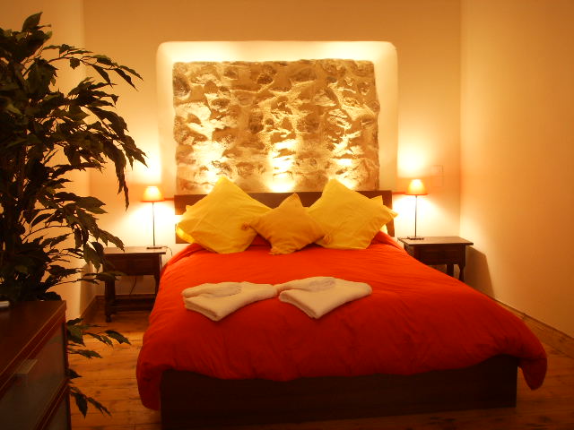 Maison Caramany is located on the village square and is built on three levels . On the ground floor you will find the lounge, kitchen, a WC with wash basin and the main bedroom. The lounge has two sofas, one of which opens into a large and very comfortable bed. In the corner is a wood dining table which can be extended to comfortably accommodate 6 people. A smart television (Netflix, etc) is available plus a DVD player with a library of over 50 films. One of the walls shows off its impressive stonework and it also has an opening into the kitchen, adding to the intimate atmosphere. The large kitchen has plenty of room for those who enjoy cooking. It comes equipped with all the needs of a modern day kitchen including crockery and cutlery, a toaster, a cafetiere, a fondu and raclette set, an electric kettle, pots, pans and baking dishes. The Main bedroom is both stylish and comfortable. The focal point of the room, a section of stonework with mood lighting, is above the double bed. Along with a wardrobe, chest of drawers and mirror comes an intimate relaxation corner with a 2 seater sofa, coffee table, library and TV with DVD player and Playstation 2.